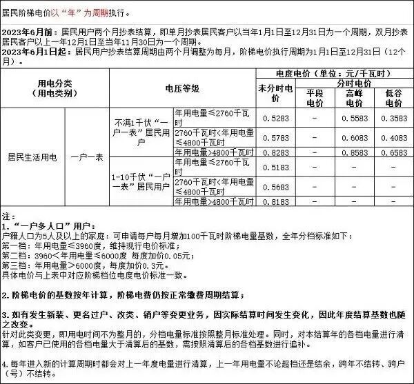 阶梯电价(年累计)