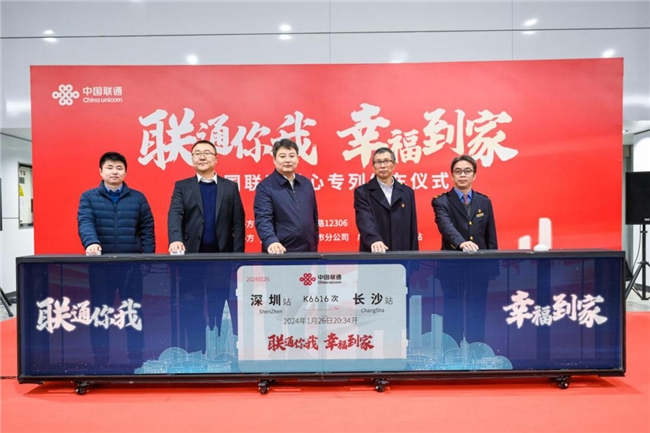 1月26日,由中国联通、铁路12306联合主办,中国联通深圳市分公司、广铁集团深圳车站联合承办的“联通你我 幸福到家”爱心专列发车仪式圆满举行,由深圳开往长沙的K6616次联通爱心专列在深圳站顺利发车。在春节来临之际,这趟承载着1000名粤港澳大湾区高质量发展的践行者、建设者的爱心专列,踏上一条暖心的回家之路。