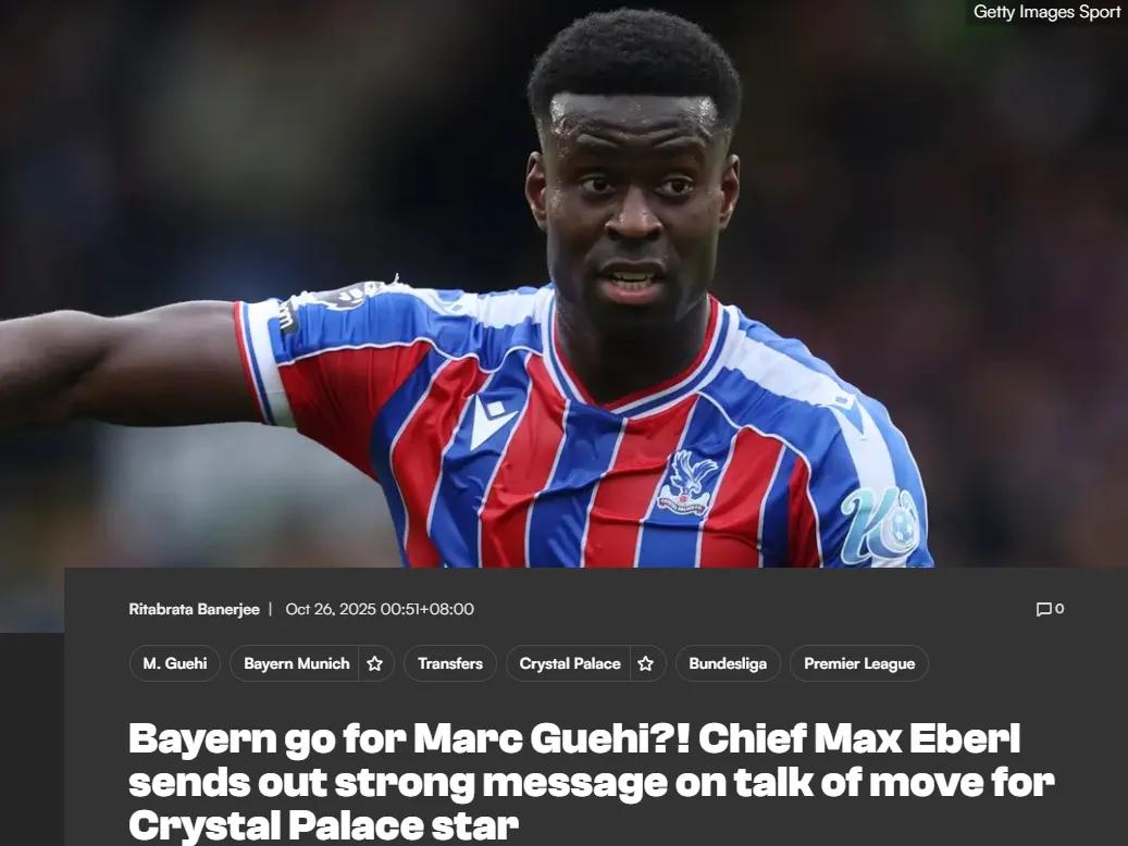 拜仁高管艾贝尔在接受DAZN采访时暗示,他们最近的确在运作水晶宫中卫格伊。