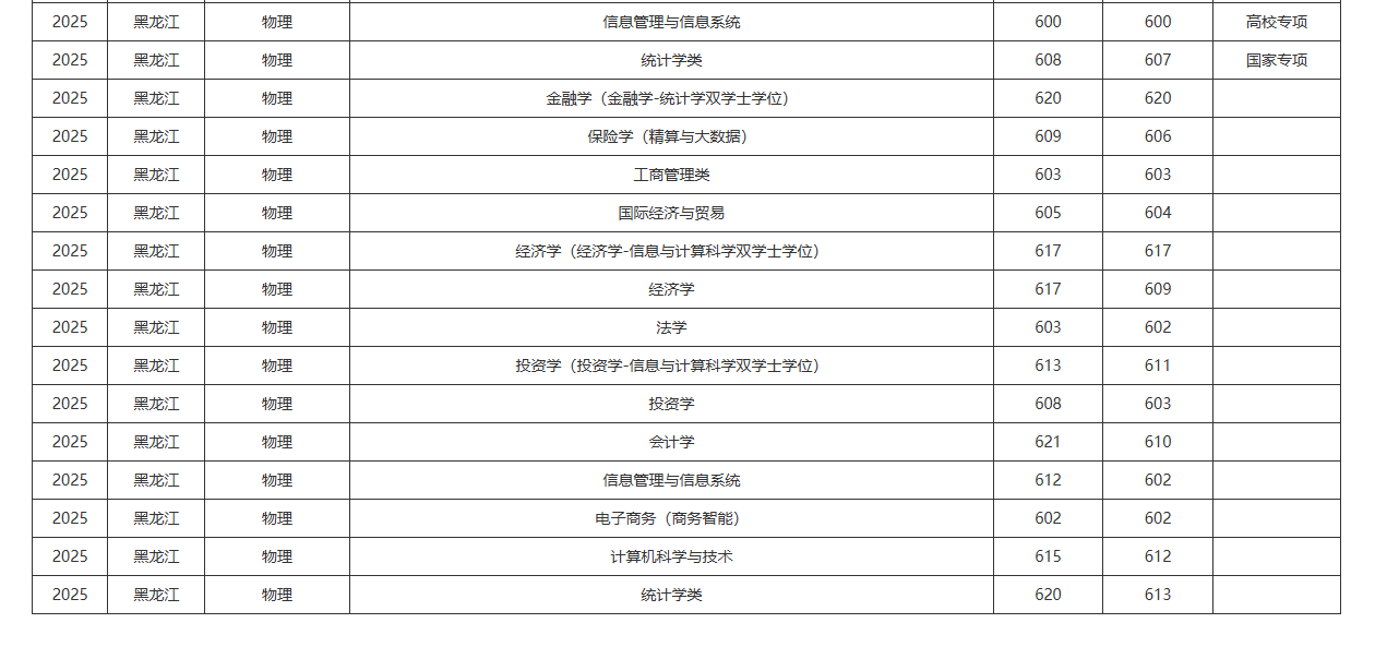 咱们先来看看物理类这边的“修罗场”。在黑龙江这片极其看重理工科实力的考区,上财的物理类最高录取分直接飙到了令人咋舌的620分。更有意思的是,摘得这顶分数桂冠的,并不是传统意义上纯粹的金融学或经济学,而是统计学以及金融学与统计学的双学位项目。
