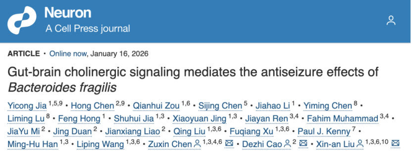 Neuron原文:“Gut-Brain Cholinergic Signaling Mediates the Antiseizure Effects of Bacteroides fragilis”
