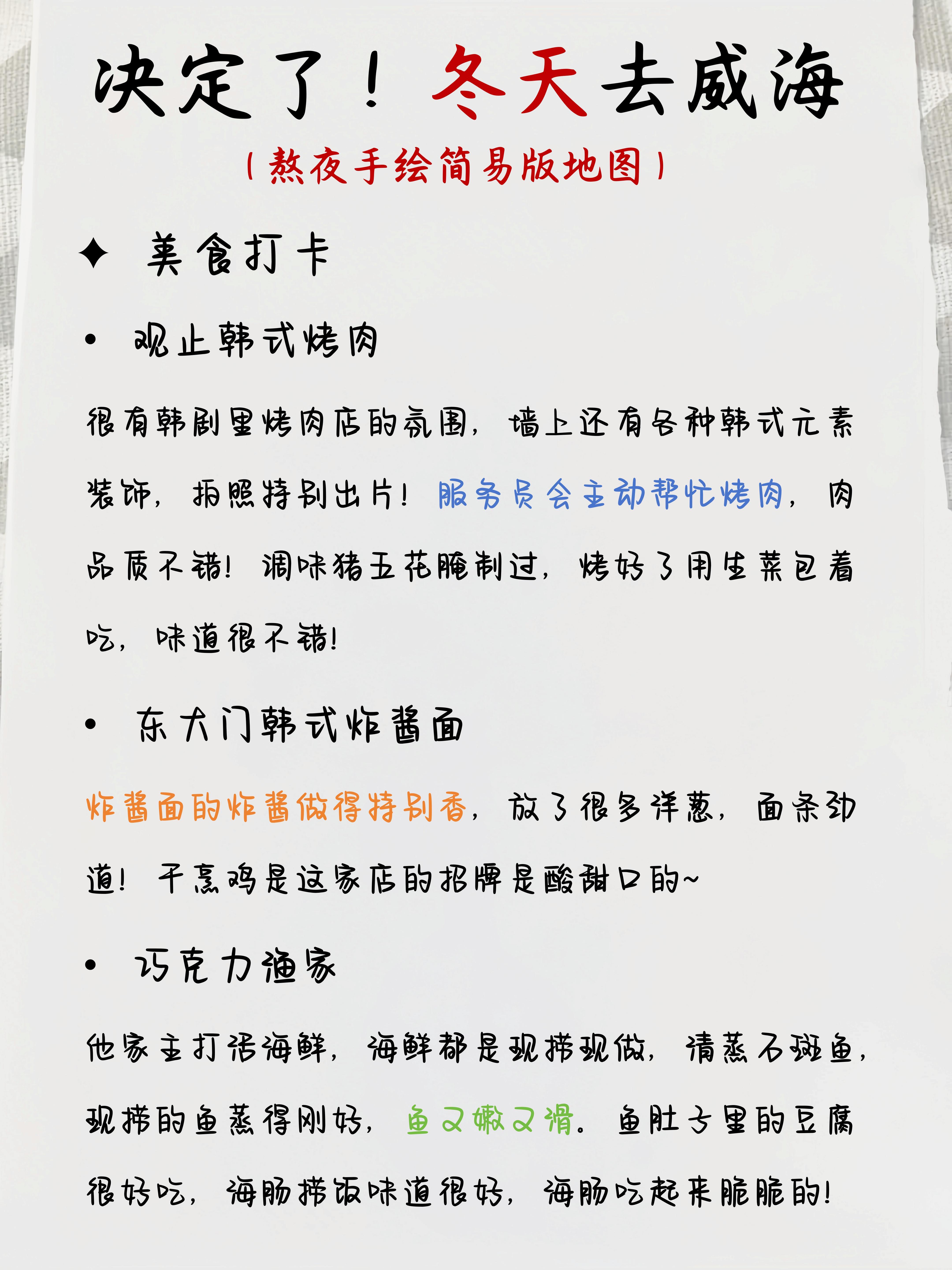冬天威海旅行,手绘简易版地图