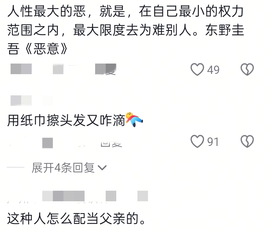 视频发到网上后,不少网友都说到:“这个父亲老了就完了,看有谁会照顾他!”