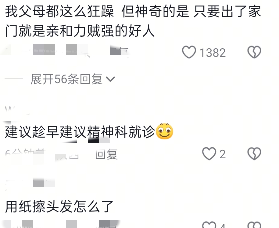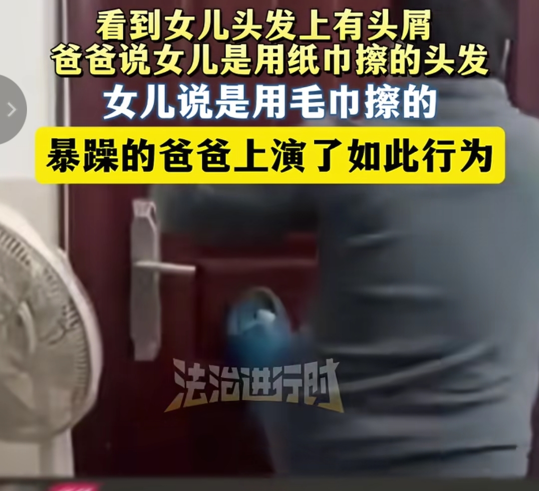 一位只有不到10岁的小女孩刚洗完头发,正准备吹头发,她爸爸看到她头上有头皮屑,便问道是用纸巾擦的吧,女儿说,是用毛巾擦的。