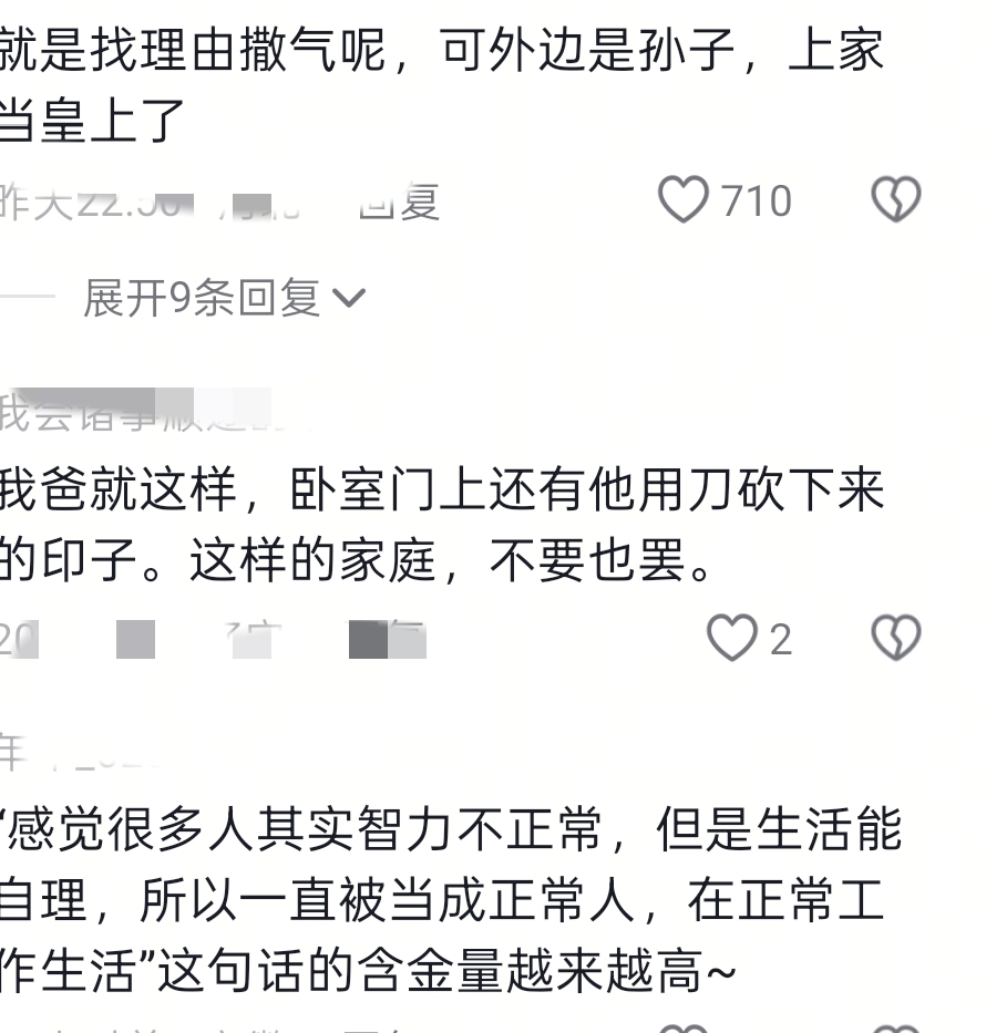 这种人在我看来就是最没用之人,在外保护不了自己的亲人,在内却欺压他们,在她们身上找到存在感,真是可耻至极。