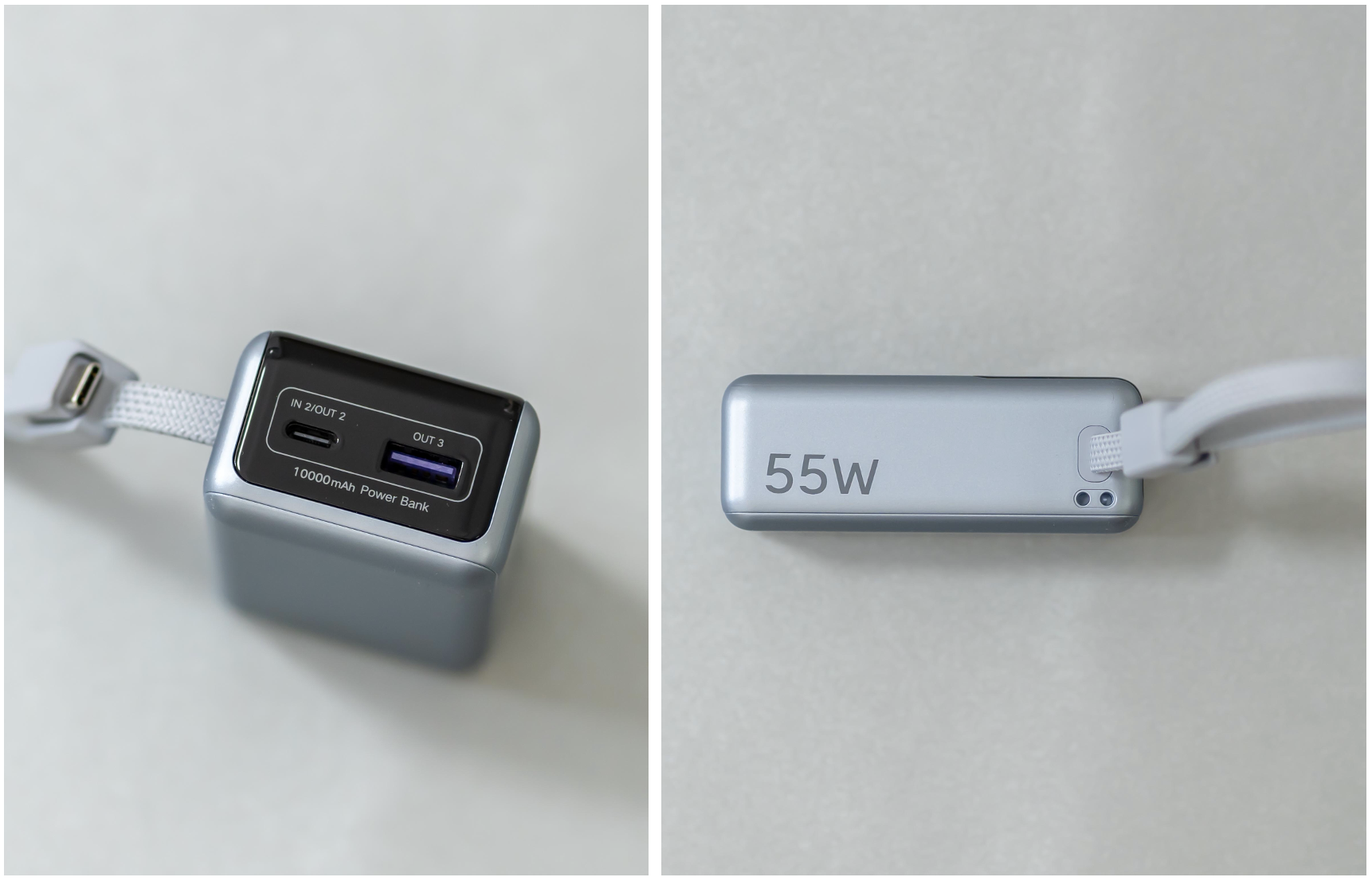 虽然绿联能量湃 Pro 55W 充电宝体积小巧,但它拥有自带C线 + C 口 + A 口 三个接口配置,支持最高55W疾速快充(小米协议 55W MAX)。