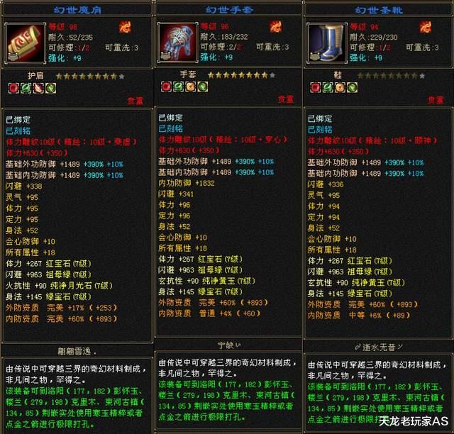 这个号的三大件都是深蓝大八星,虽然项链和衣服的词条不是完美的,但是属性都很大。