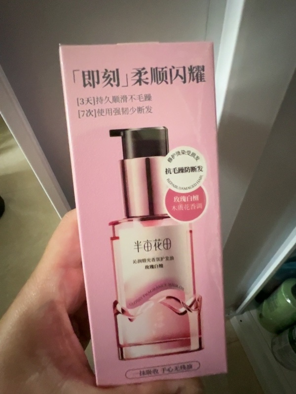 这个产品用下来整体还可用,特别是洗完头半干的时候抹一点点,发梢立马没那么毛躁了。听说里面加了摩洛哥坚果油和多种植物精华,通过低温冷压提取保留活性成分,理论上更易被发丝吸收。不过香味偏浓烈,留香太久反而让我不太自在,而且瓶口设计太松,包里一放容易漏。
