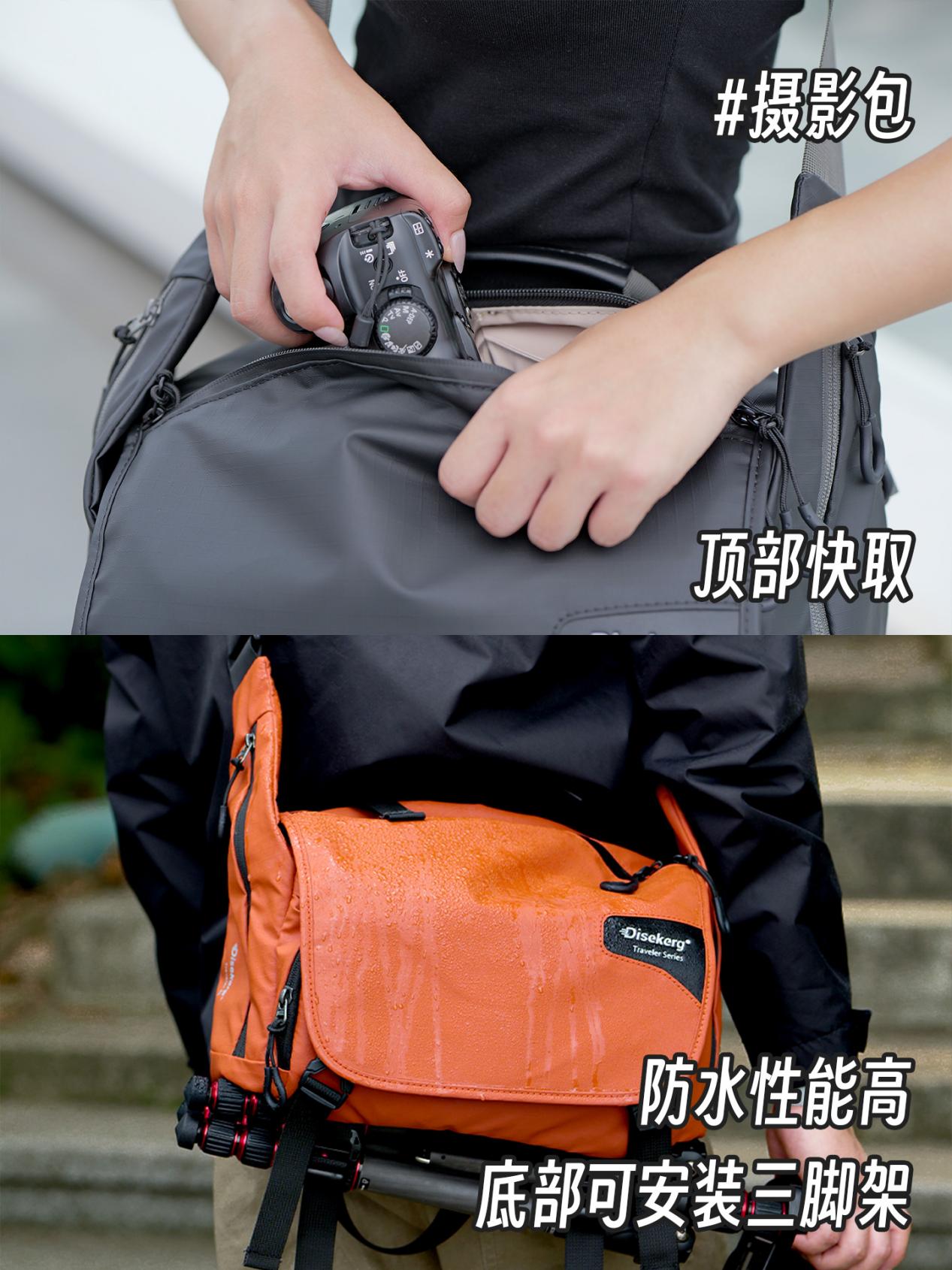 摄影包几乎是每个摄影师必备的装备,选择合适的摄影包一直是摄影师们头疼的问题。这款颜值够高,日常背不像专业器材包,装得下2台相机+2个镜头,还能塞下手机、充电宝等小物件。顶部有快取口,不用卸包就能直接拿相机,抓拍景区小景超方便,而且肩带够宽,背大半天也不勒肩,防水面料还能防突如其来的小雨。