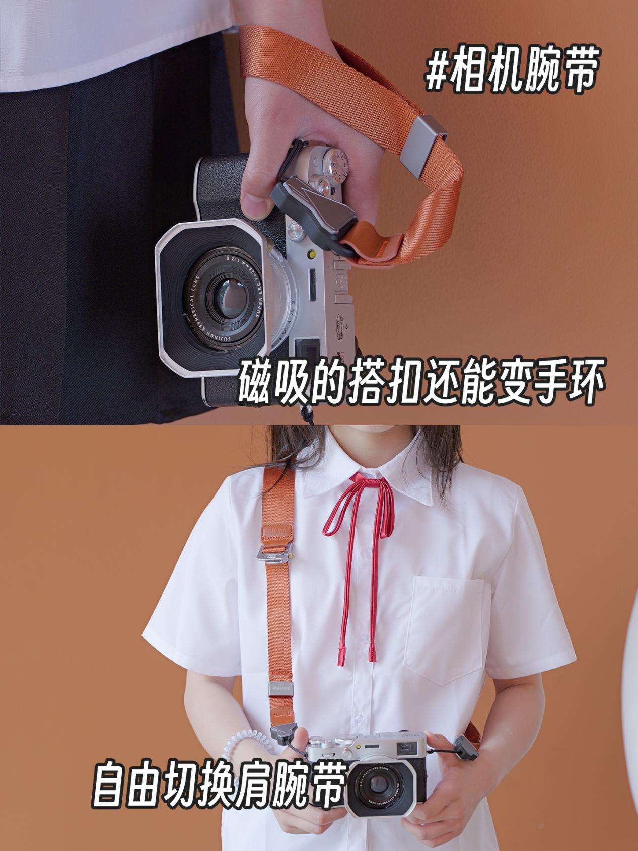 出游拍久了手酸?这条腕带能救急!它能拆成肩带,想挂脖子、缠手腕随你切换,磁吸搭扣还能当手环,戴在手上不占地方还显精致。逛古镇、拍美食时用腕带,单手举相机也稳,不怕手滑摔设备,各种拍摄场景都能适配,轻装出游必备。