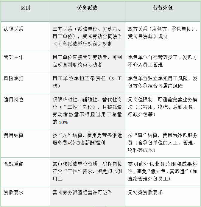 事实上,劳务派遣和劳务外包并无绝对的“优劣之分”,核心在于企业的用工需求、管理模式和风险承受能力。