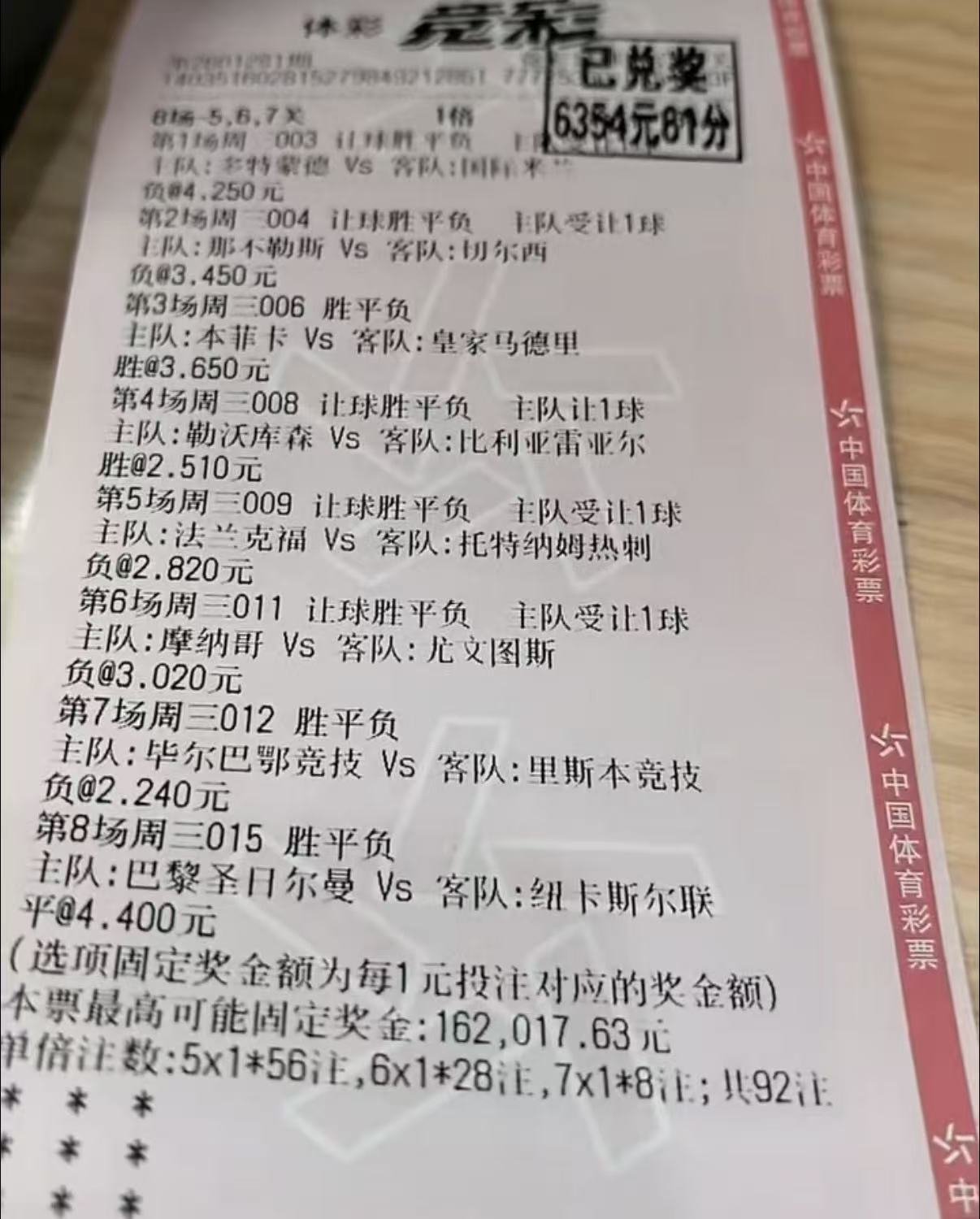对应的竞彩选项为:胜