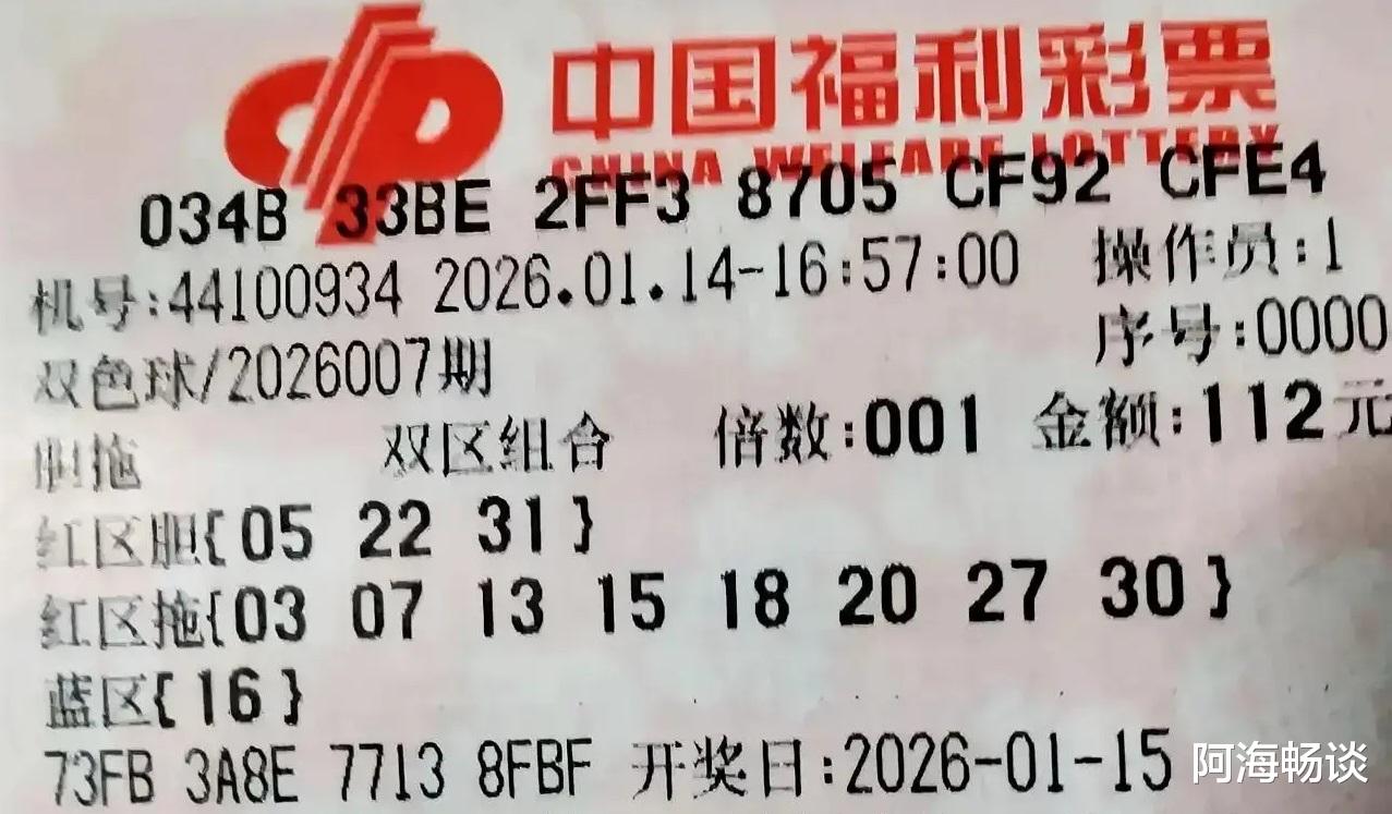 大家好!今天是2026年1月15日,农历十一月廿七,星期四。今晚即将迎来双色球第26007期的开奖,许多朋友已经热情地晒出了本期票面。先来回顾一下上期(26006期)的开奖情况:红球号码为2、6、22、23、24、28,蓝球为15。当期共开出一等奖2注,均来自山东。上期数据回顾完毕,接下来就让我们一起欣赏本期分享的票面吧。也温馨提醒各位,观赏晒票固然有趣,但要保持理性,量力而行,以平和的心态参与。