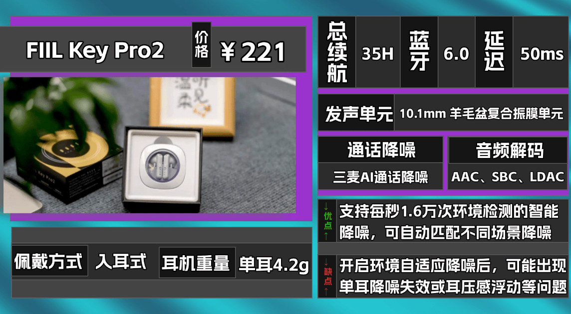 热门品牌十、F IIL K ey Pro2蓝牙耳机