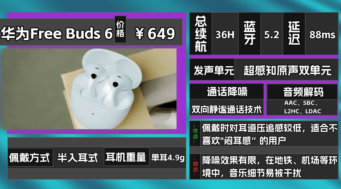 热门品牌五、华 为F reeBuds 6蓝牙耳机