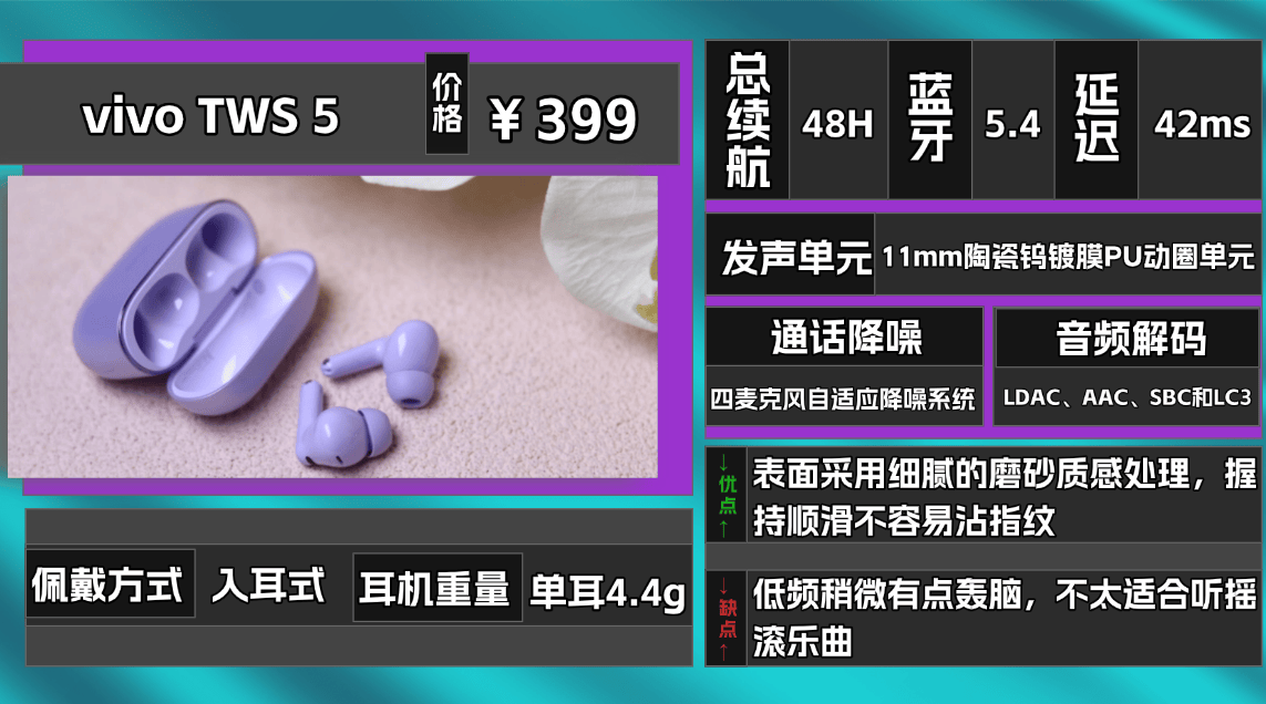 热门品牌六、V ivo T WS 5蓝牙耳机