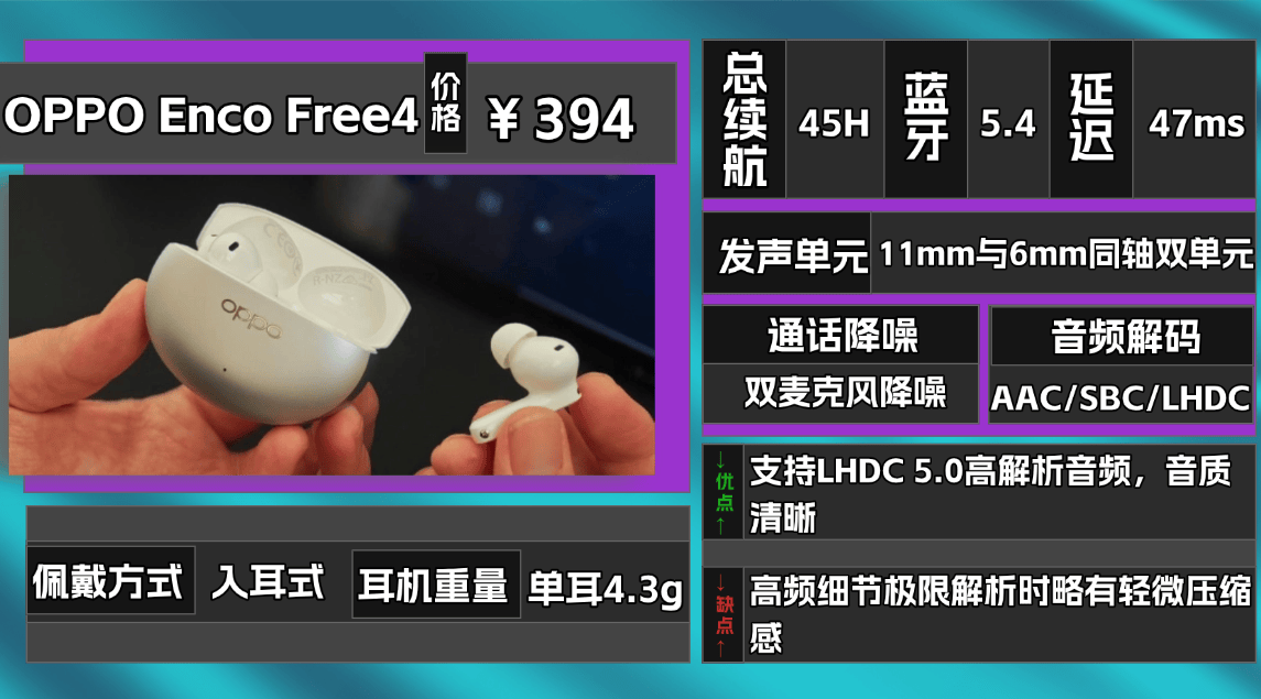 热门品牌九、O PPO E nco Free4蓝牙耳机