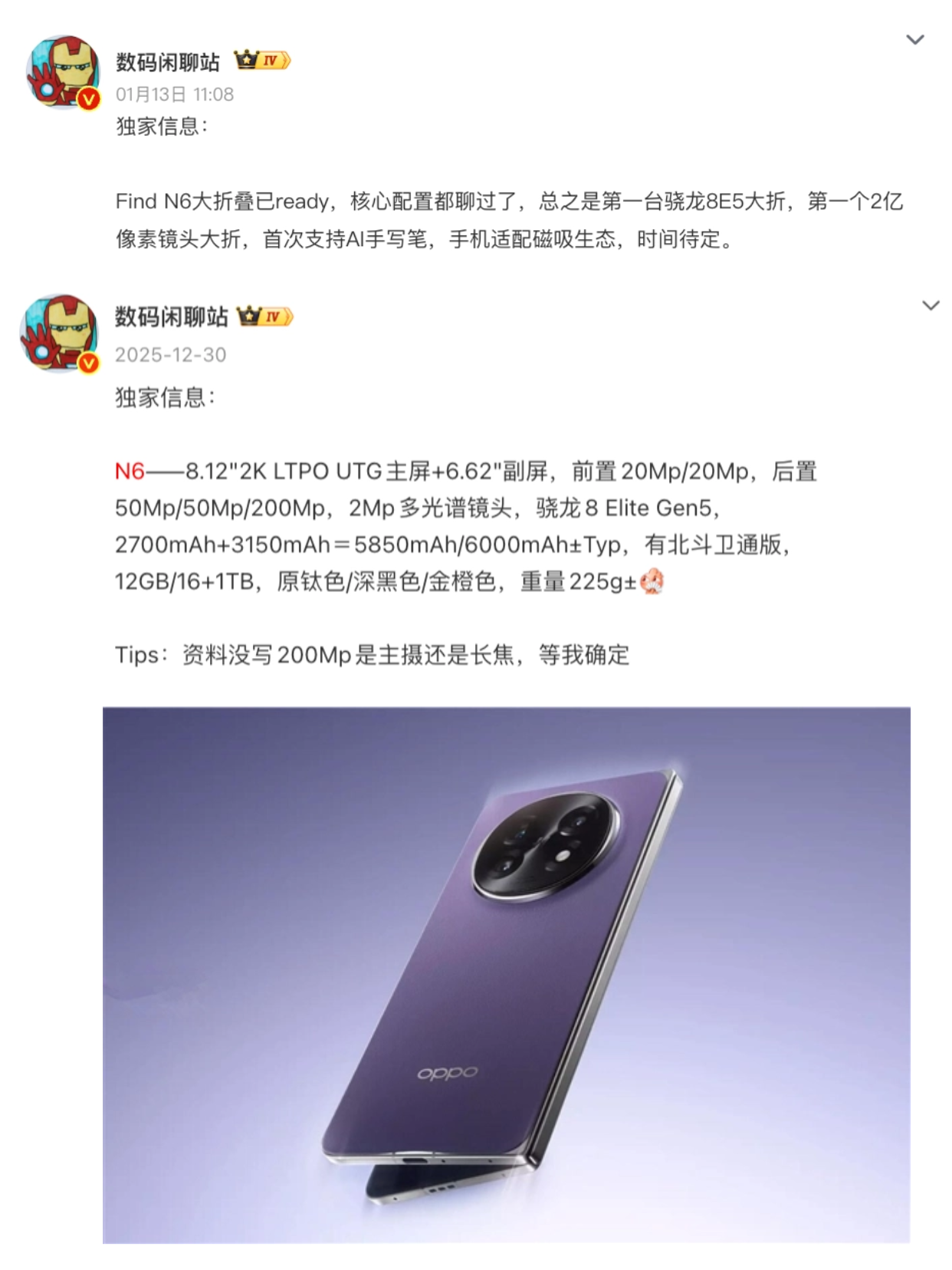 既然iPhone Fold的折痕平整度可能干不过Find N5,那接下来的OPPO Find N6可能更难超越了,据说Find N6升级到了纳米晶钛合金铰链,还用上了动态可变曲率方案,有望成为全球首款量产“无折痕”折叠屏,折痕表现估计又得领先行业了。而且Find N6还升级了2亿像素镜头+多光谱传感器、电池6000mAh以上,配置依旧全能,大家可以期待一手~