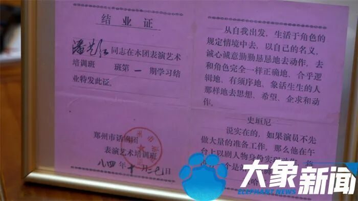 潘艺虹说她打小就有一个演员梦,儿时的偶像是王心刚、达式常、夏梦、王晓棠。19岁参加过郑州话剧团第一期影视表演的演员培训班,此后40年,那本充满回忆的表演证书,始终伴她左右。
