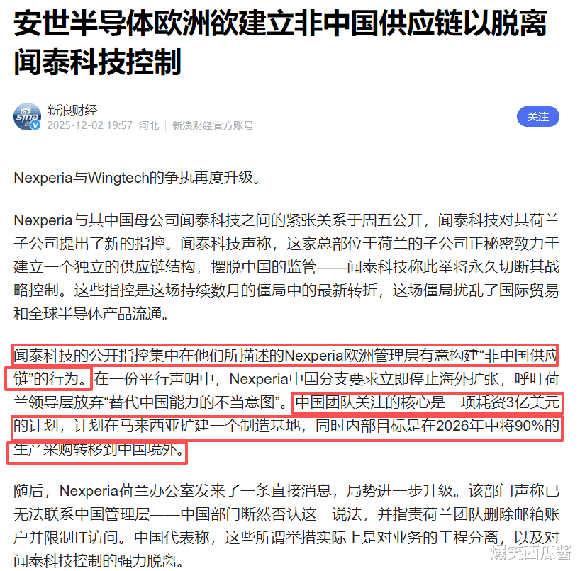 一旦马来西亚的产能爬坡完成,并通过了博世、大陆、本田这些客户的验证,中国手中原本最硬的底牌——东莞和无锡的封测能力,就会瞬间变成可有可无的“弃子”。到时候,安世就真正变成了一家从晶圆到封测完全脱离中国控制的欧洲公司,而闻泰手里剩下的,可能只是几个空荡荡的工厂车间和一张毫无价值的股权证书。