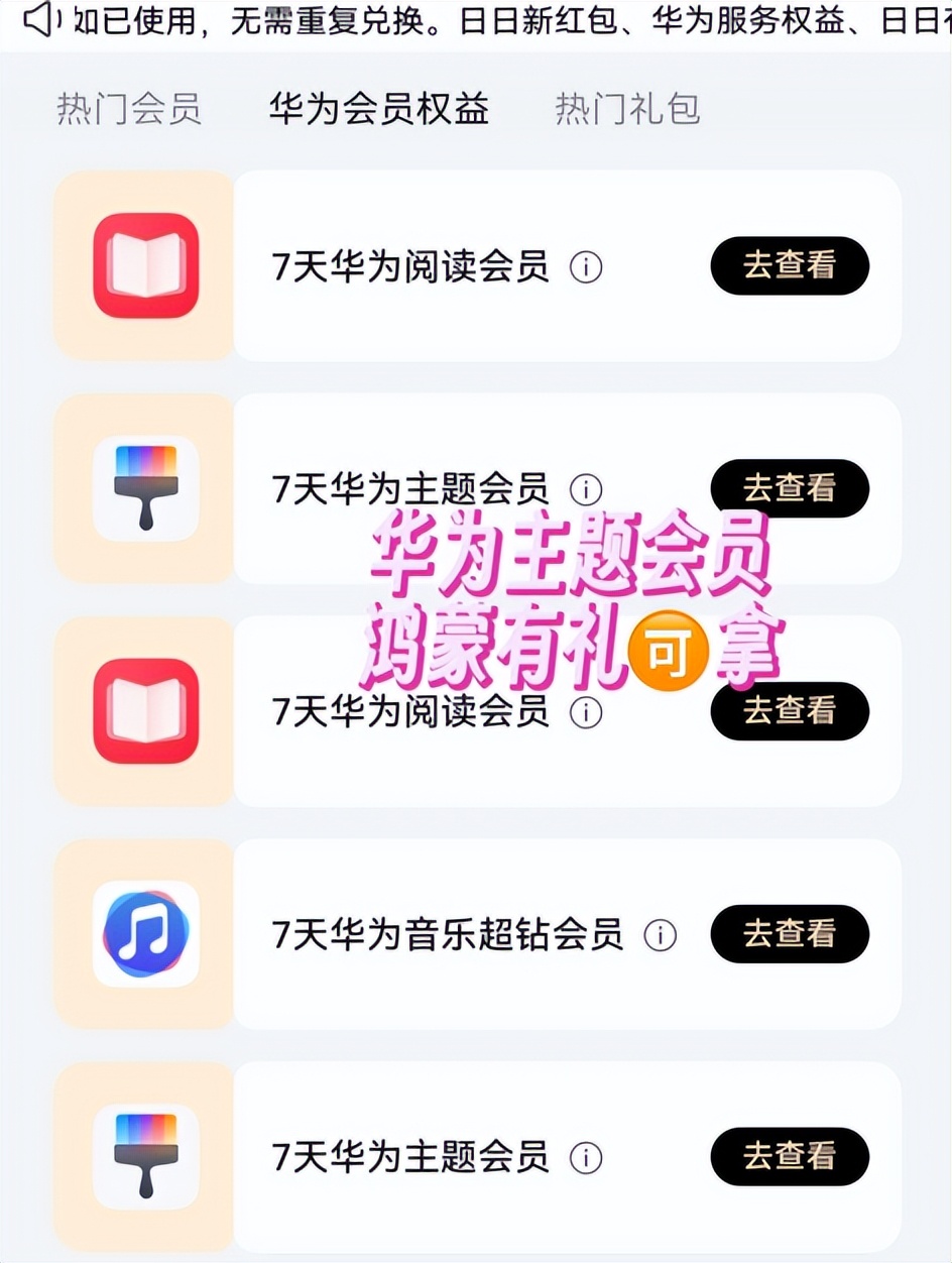 现在就安利给大家:手机升级至HarmonyOS 6,在桌面右滑负一屏进入"鸿蒙有礼"活动。每天签到能领随机红包和各种会员权益,我就是这么领到7天华为主题会员。
