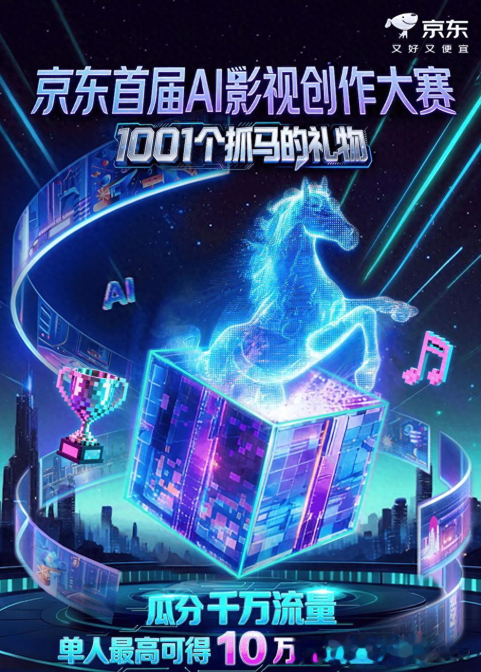 1月14日,京东正式发起首届AI影视创作大赛,面向全民发出邀约,邀请广大用户用AI技术结合京东年货节全民寻马IP形象“马红红”、京东数字人男团E'Core或品牌指定的商品形象创作视频,激发创意潜能。本次大赛设有丰厚的基础奖金:冠军5万元、亚军3万元、季军2万元,另设1万元马年特别创意奖及最高4万元品牌赛道奖,个人可叠加获得最高10万元现金奖励。此外,京东还为所有参赛作品提供千万流量扶持,作品征集期持续至2月1日。