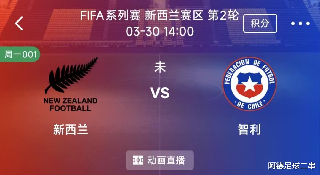 001国际赛:新西兰VS智利 时间:2026-03-30 14:00 场地:新西兰