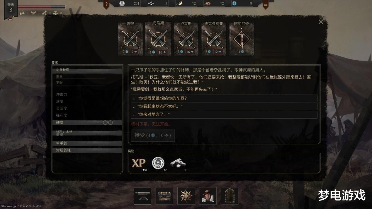 还有比较令人费解的剧情是,我一个铁匠竟然被几个瘦骨嶙峋的盗贼给威胁?这有点不能理解,毕竟我干的可是力气活,体质应该不弱,怎么会怕几个小贼呢!