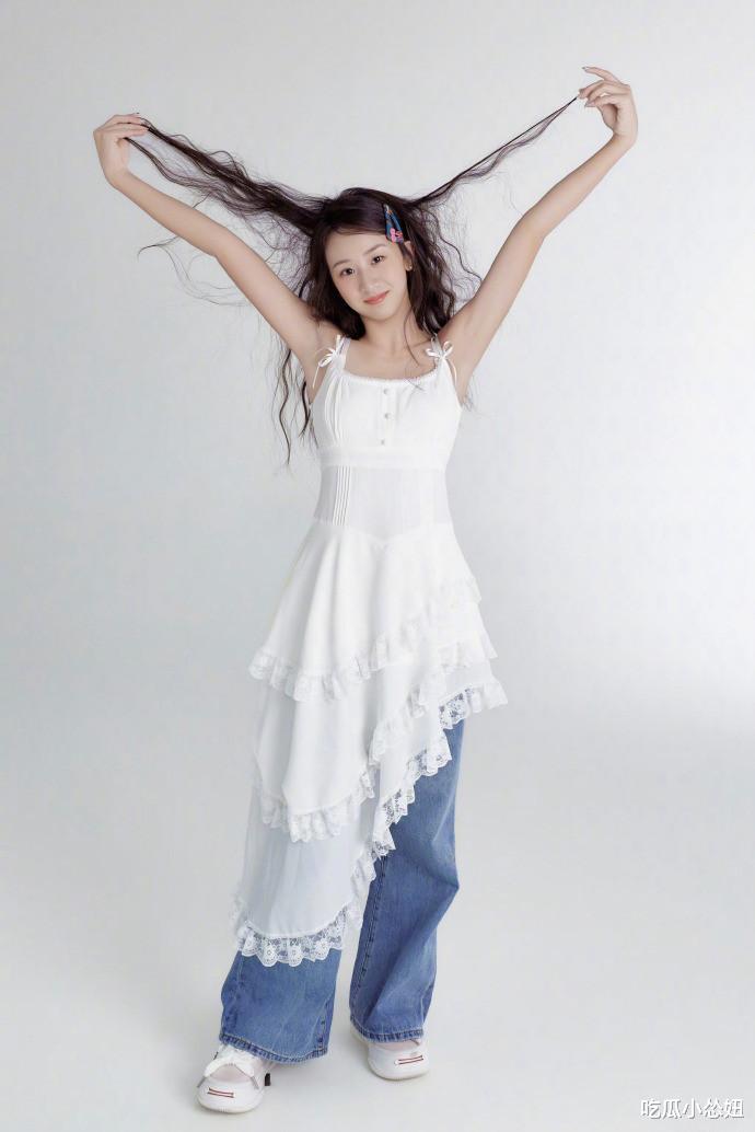 没有刻意凹造型,没有浓妆艳抹,也没有奢华的名牌堆砌——她就那样站在那里,清爽得像是校园里迎面走来的高年级学姐。