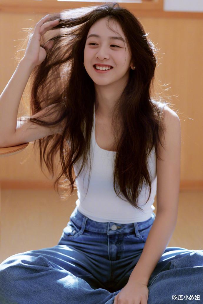 让人意外的是,森碟18岁的生日写真,和大部分星二代截然不同。她穿着一件简约的白色无袖背心,搭配宽松牛仔裤,一头蓬松长发自然垂落,几乎没有妆容加持,笑起来眼睛弯成月牙,满是18岁少女该有的干净与元气。