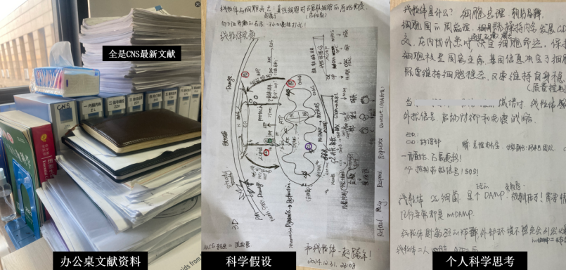 (周博士办公桌文献资料、科学假设、科学思考,周先生提供)