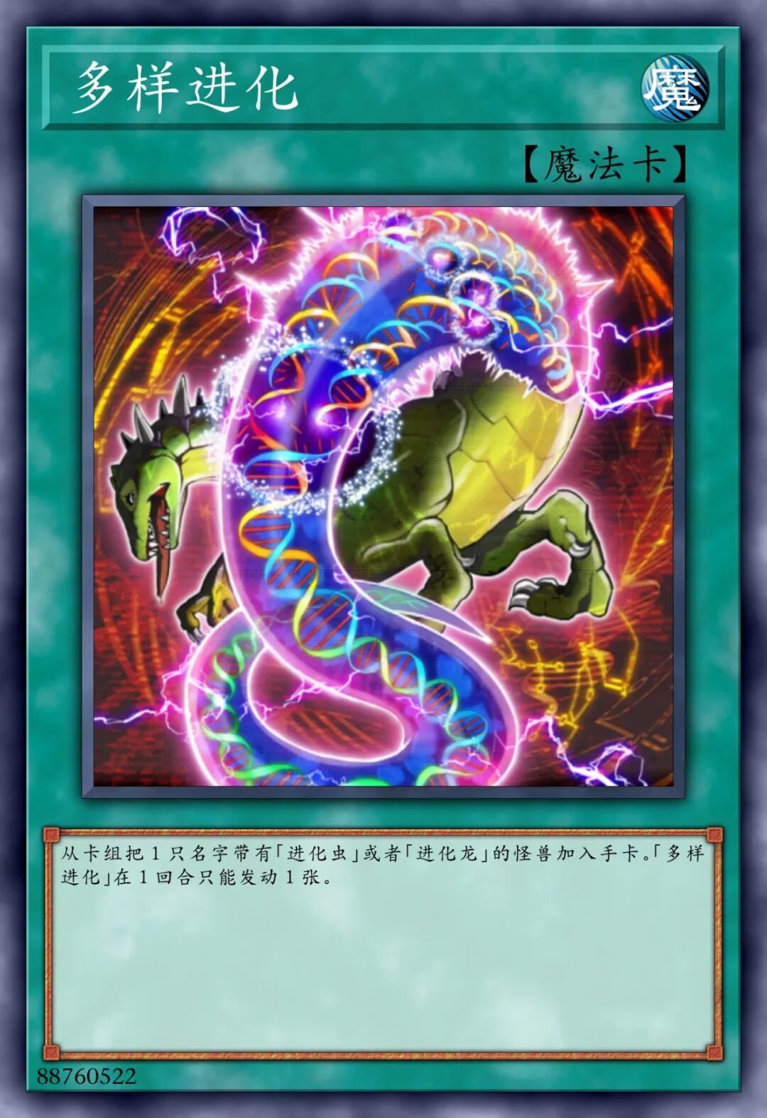 “进化帝”“进化龙”和“进化虫”都是#游戏王 卡牌中“进化”系列的分支,其主要以地球中生代的白垩纪、侏罗纪、三叠纪三个纪元中的生物为设计灵感,畅想它们如果没有灭绝将会进化成什么样子。最高级的是“进化帝”由启源恐龙进化而来有着操纵自然力量的能力是生物界的主宰,这类卡的效果也很有意思就是没有一回合一次的限制,这种设计在《游戏王》中可是“高贵的效果”。