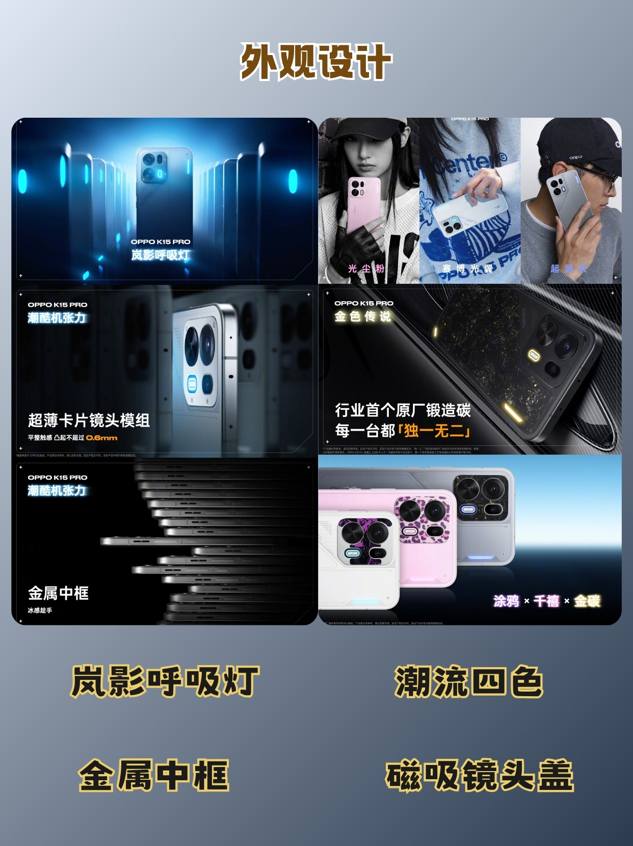说一下个人看法,OPPO K15 Pro系列这次外观是足够吸睛的,有全面升级的岚影呼吸灯,潮流属性拉满的四款颜色,还可以DIY磁吸镜头盖,很适合追求潮流的年轻人,加上金属中框,质感比得上一些三千价位起步的手机。