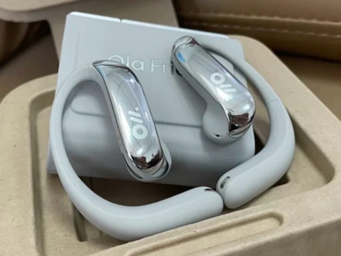 佩戴体验:Ola Friend单耳重量只有6.6g,机身外侧用了柔软亲肤的液态硅胶,佩戴起来轻盈无负担,它还采用黄金夹角的耳挂结构,能顺着人耳轮廓自然贴合,稳固不晃动,长时间戴也不会有明显压耳感,日常通勤和运动都很舒服。