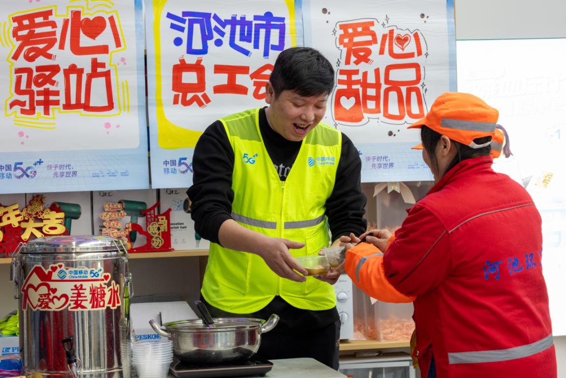 新春送暖!河池移动南桥营业厅工会驿站为户外工作者送福送温情