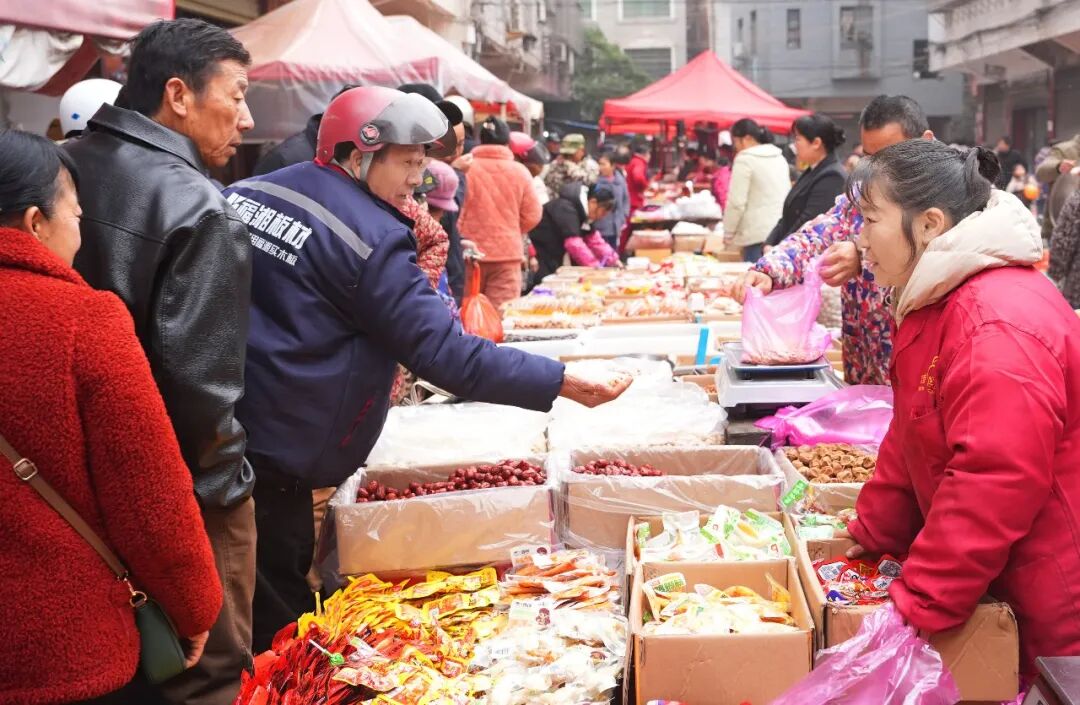 1月28日,在湖南省衡阳市衡东县吴集镇农贸市场,人们在赶集购买年货。新华社发(曹正平摄)