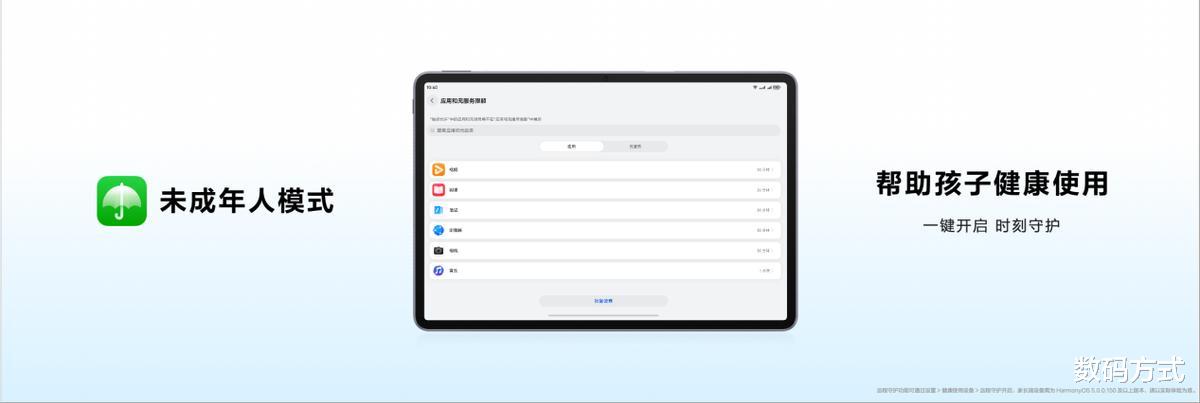 为了更好地服务于孩子的学习需求,全新华为MatePad 11.5内置了鸿蒙AI健康学习功能。其不仅能帮助家长关注孩子的学习进度,还在多个方面为孩子的学习提供了智能支持。一方面,未成年人模式允许家长管理孩子的使用时间和内容,设定每天的使用时长,管理访问的网站和应用,确保孩子在一个安全的网络环境中学习。