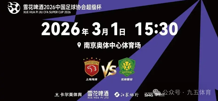 几天后,即3月1日(周日)下午15:30,中国足球的“开年第一战”——中国足协超级杯将在南京奥体中心激情上演,上海海港队(中超冠军)VS北京国安队(足协杯冠军)。