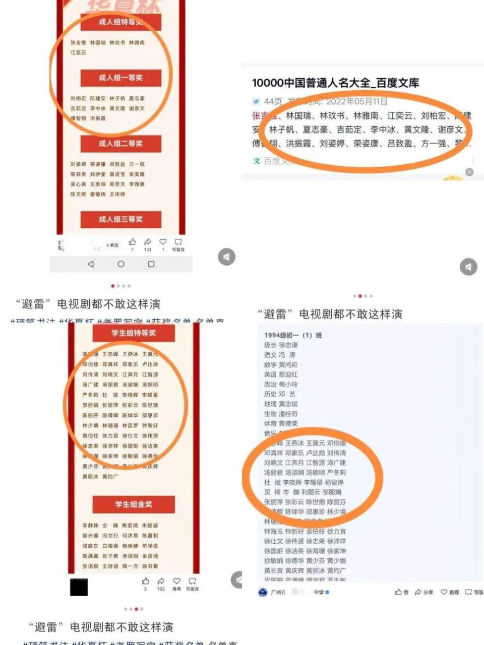 奇葩的是,这五个名字来自百度文库里的一份《10000中国普通人名大全》,他们是“全网最忙五人组”,出现在各大比赛、招标里,堪称现实版“六边形战士”。