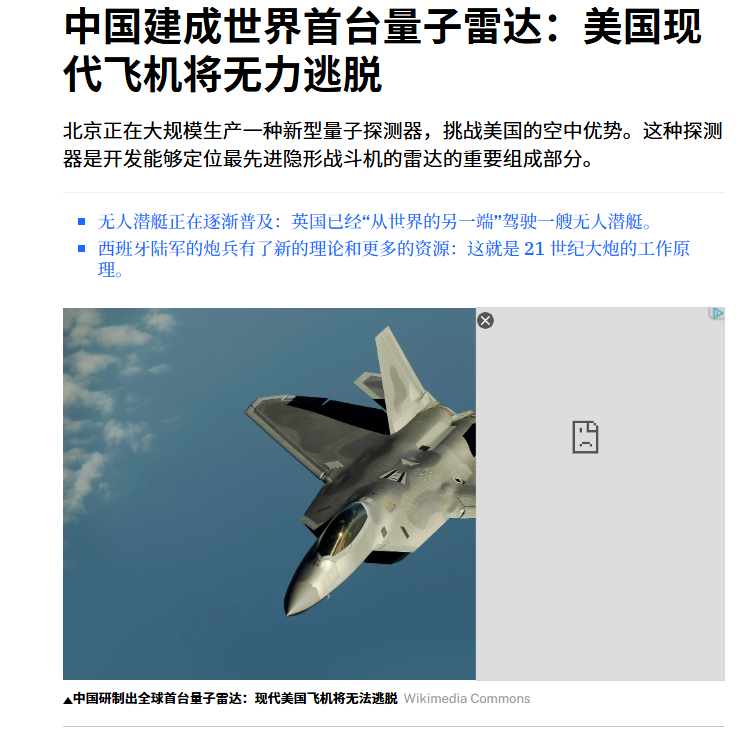 最近,西班牙媒体《理性报》发了一条重磅消息。称中国正在大规模生产一种新型的量子雷达。这项雷达技术,可能直接挑战美国赖以维持空中霸权的隐形战机体系。