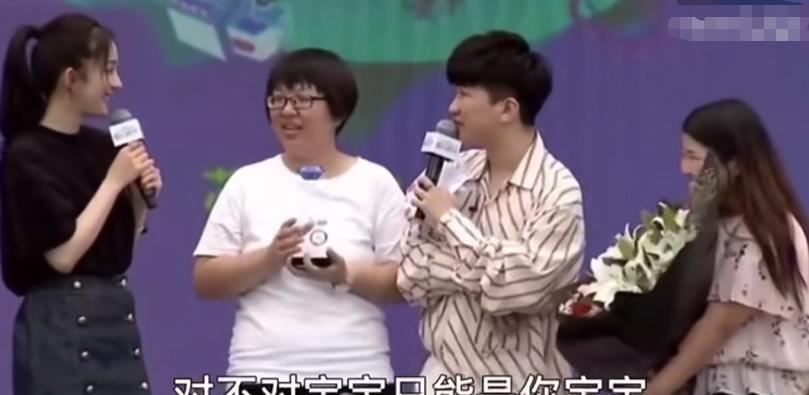 那紧接着粉丝拿上来一个牌牌,意思就是杨幂你先跟牌牌合个影是不是?