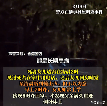 更令人心惊的是案发时间线:2月9日凌晨2时,阿欣还见父亲在客厅使用手机;清晨时分,女儿被撞击声惊醒却未深究;直至傍晚归家,才惊觉父亲已成冰冷的尸骸。这种"日常中的异常"被忽视的细节,恰恰成为悲剧的注脚。