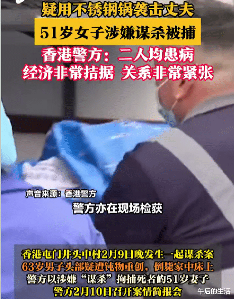 目前,何妻因涉嫌谋杀被捕,但因突发头晕呕吐仍在屯门医院留医。这起案件在井头中村引发强烈震动——街坊们难以置信,这个看似普通的家庭竟藏着如此深重的矛盾。有社工指出,长期经济压力与慢性病痛如同慢性毒药,逐渐侵蚀着家庭成员的心理防线。