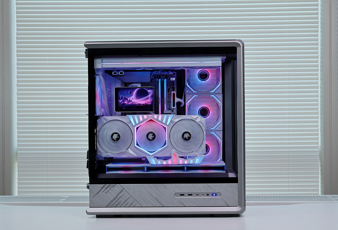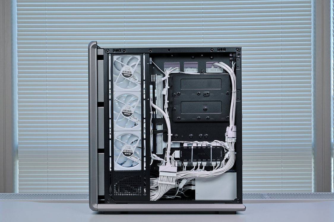 机箱支持ATX及以下规格主板,并支持背插ATX主板。风冷安装限高169mm,支持顶置/侧置360冷排,至多支持10个120mm风扇。配备7条PCIe显卡插槽,模块化的设计支持横竖切换,显卡安装限长439mm。