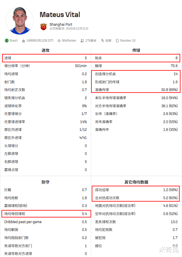 维塔尔的基本盘是他高达89%的传球成功率,以及58%的过人成功率,保证了过中圈时的稳定性,有利于后排队友一起上前。