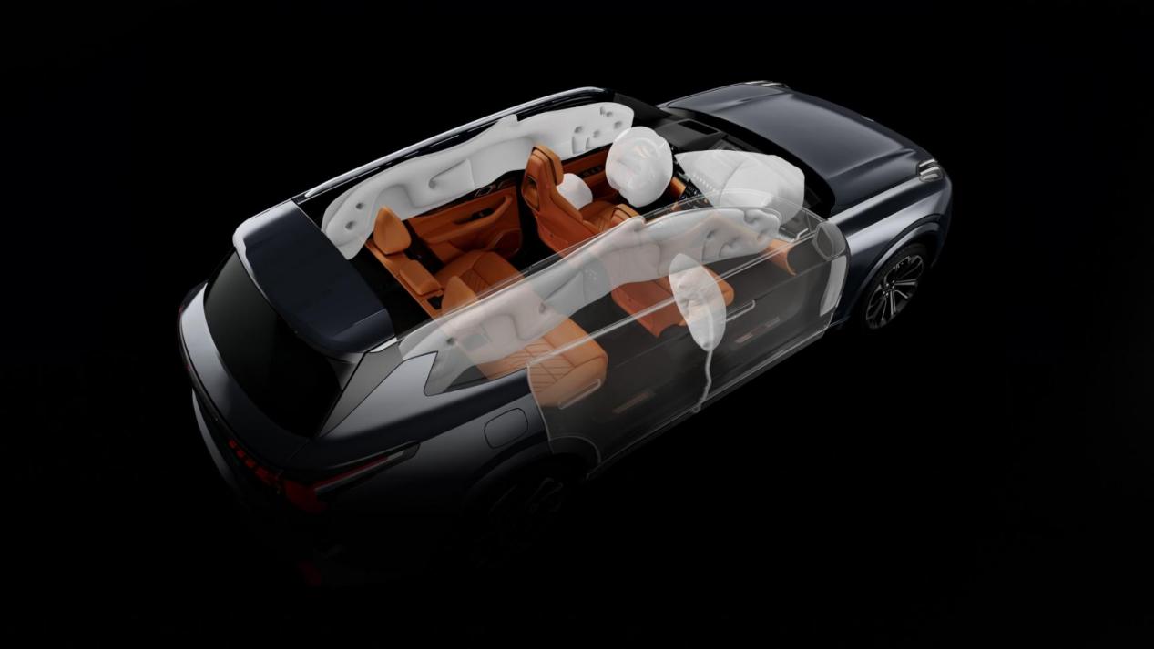 车内防护方面,领克09坚持“每一位都是安全C位”的设计理念。其配备同级唯一的前后热成型钢纵梁结构,确保前后纵梁强度一致,同时在后排座椅背部采用防穿刺高强度钢板,有效保护后排乘员安全。2550mm超长保压侧气帘展开后可覆盖A柱至D柱,为前后排乘客提供全面侧方防护;副驾搭载的国内首创特制狐首型安全气囊,在偏置碰撞时对头部的承托保护更全面,能显著降低高伤害风险。