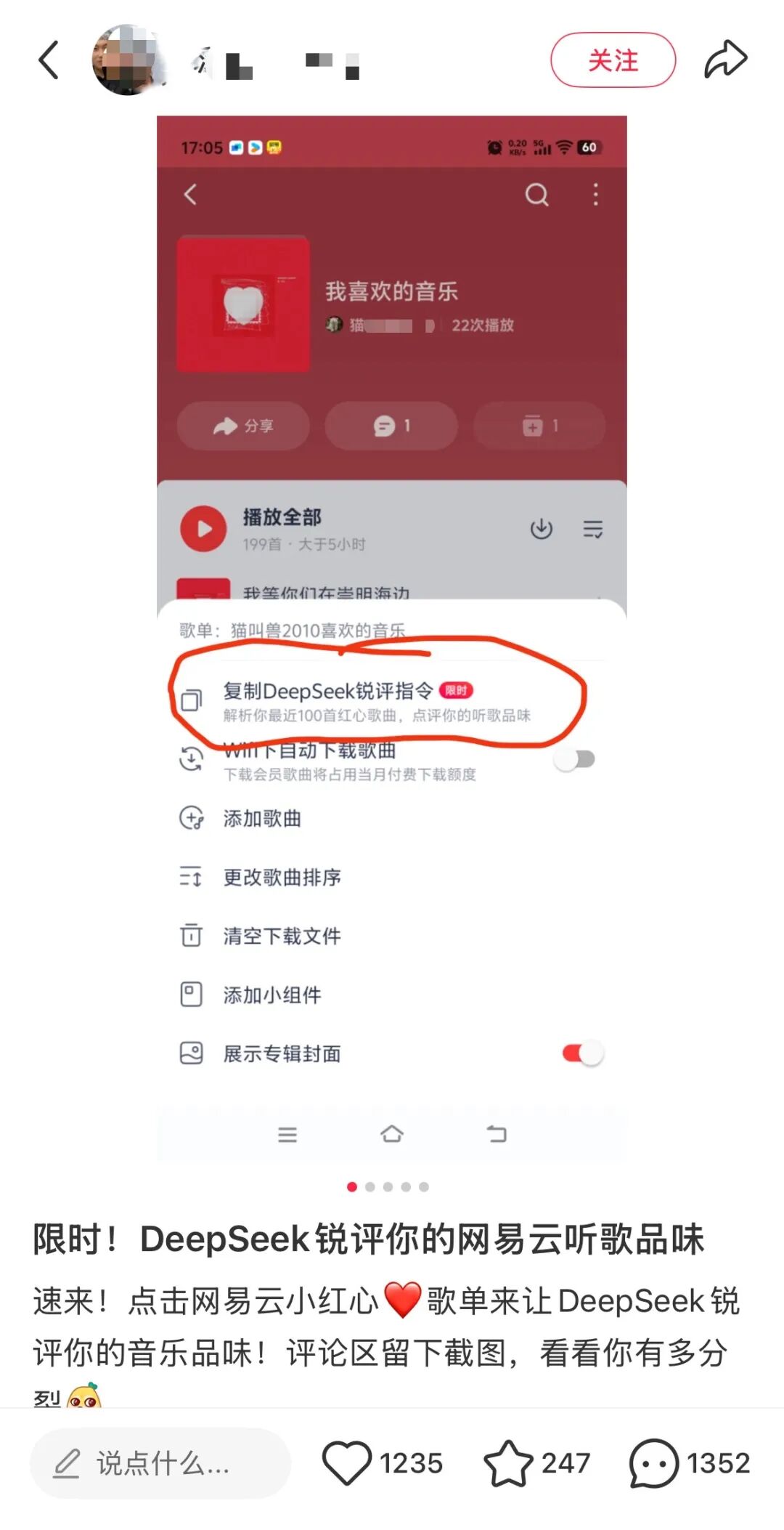 而更进一步的“体验加法”,则在于构建让用户产生归属感的“社区”。多邻国的“好友排行榜”将孤独学习转化为一场社交竞赛,也是强化用户留存和黏性的重要环节。2025年年初,AI产品风头正盛,网易云则迅速上线了“DeepSeek锐评歌单”功能,通过分析用户近期红心的100首歌生成一份带有犀利点评的个性化报告。