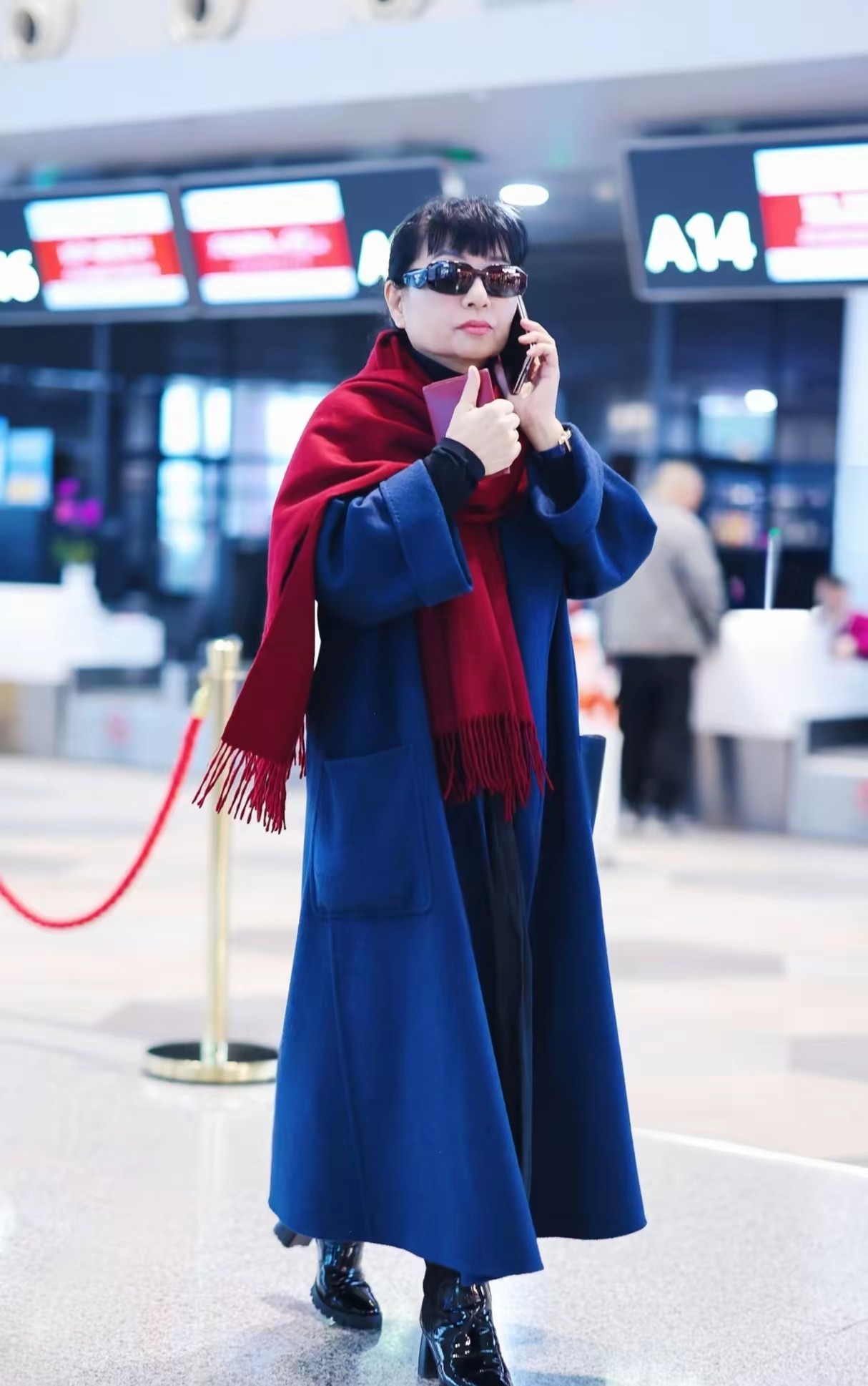 殷秀梅老师现身机场,蓝大衣红围巾优雅贵气,从小听她的歌长大的,很喜欢她唱的歌。
