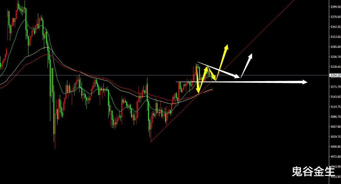近期黄金非常诡异,它不与战争挂钩,也不与美元挂钩,而是与原油挂钩,至于原因,不得而知;昨日黄金走强也是原油走弱导致的,拿下5200之后,并未走的太远,最高菜刀了5238附近,后面要想出现去年十月份那样的急速上涨很难了,震荡上涨才是关键;
