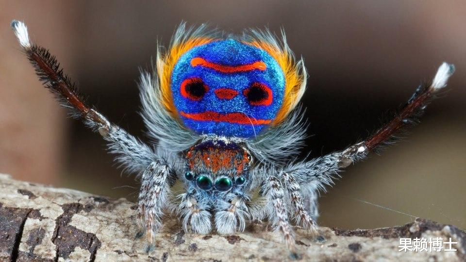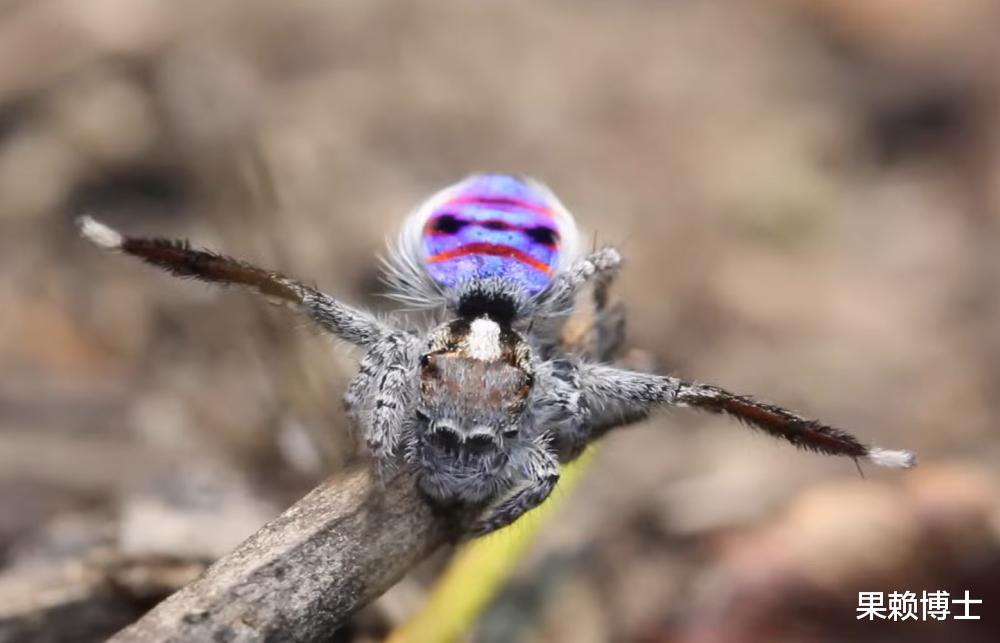 这种神奇的生物叫孔雀蛛(Peacock Spider),主要住在澳大利亚。